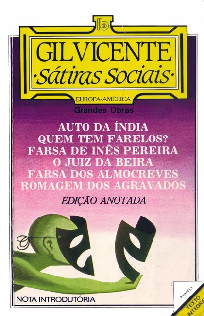Ainda na senda de Gil Vicente, acabo de reler um conjunto de seis obras de cariz satírico, reunidas num mesmo volume: Auto da Índia, Quem tem farelos?, Farsa de Inês Pereira, O Juiz da Beira, Farsa dos Almocreves e Romagem dos Agravados. Mais uma vez, tal como escrevi para Auto da Feira, senti bastante prazer na revisitação destes autos e farsas - os "tipos" vicentinos continuam, à luz de alguma (indispensável) contextualização histórica, a respirar frescura... Claro está que gostei mais de umas (impossível não destacar o Auto da Índia - com as infidelidades da Ama - e a Farsa de Inês Pereira) do que de outras, mas em todas estas obras vicentinas está presente o tipo de humor, de mordacidade, mas também de acutilante crítica social que caracterizam o autor ("verdades entre gracejos", como se lhe terá referido o humanista André de Resende).